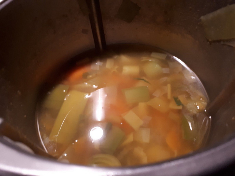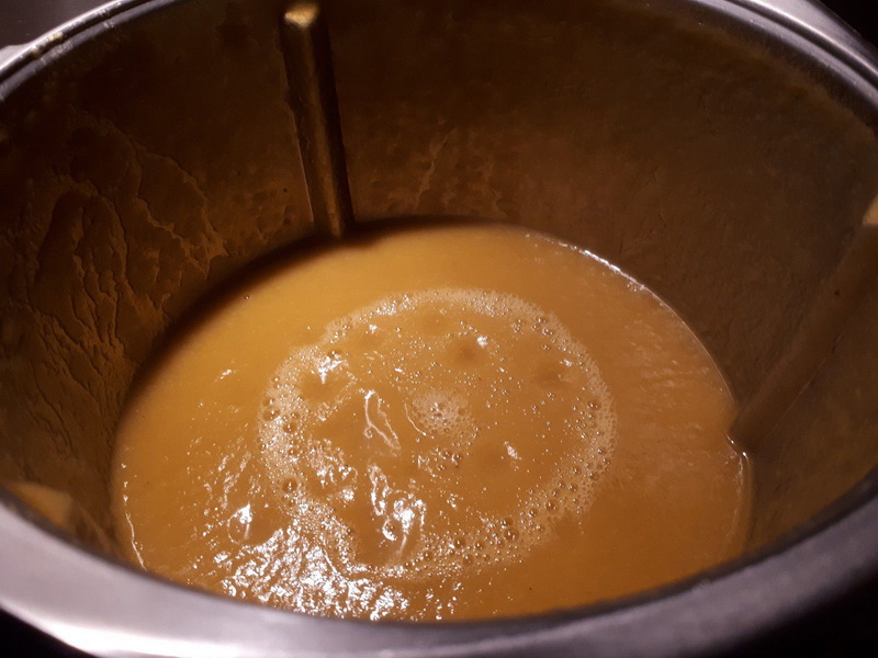 Encore un bon velouté avec lequel je me suis régalée. Je l’ai réalisé au Thermomix, bien sûr vous pouvez utiliser votre cocotte minute.