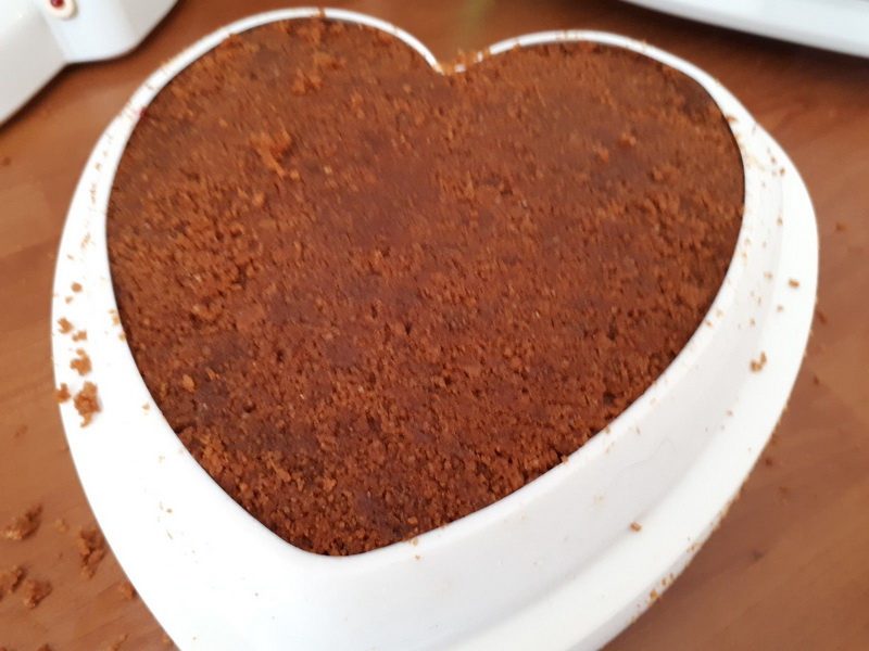 - Mettre cette pâte sur votre entremet congelé (sans le démouler), bien le tasser. Replacer rapidement au congélateur.