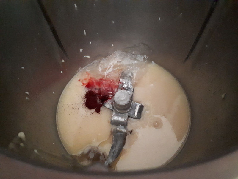- A la sonnerie, ajouter le chocolat blanc et le lait concentré puis mélanger 2min/50°C/vit2,5