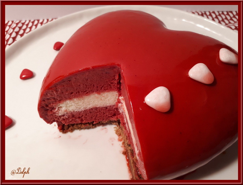 Voici un petit dessert réalisé pour la St Valentin, il est assez simple d’exécution, il faut juste un peu de temps pour prévoir les temps de pause au congélateur