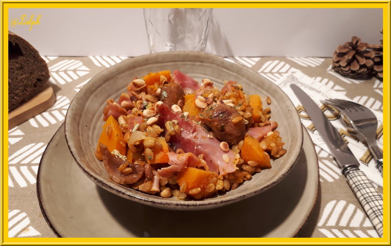 C’est encore une recette de chez ma chère Martine du blog Kilomètre-0, j’adore le petit épeautre et quand j’ai vu les ingrédients de sa poêlée, tout m’a plu alors hop en cuisine pour me faire plaisir.
