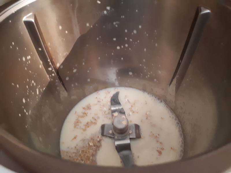 - Verser les flocons d’avoine dans le bol du Thermomix et le son d’avoine, ajouter le lait de soja et faire chauffer 6min/90°C/vit mijotage. A la sonnerie ajouter le sirop d’agave et mélanger.