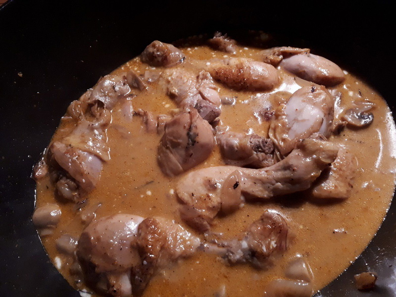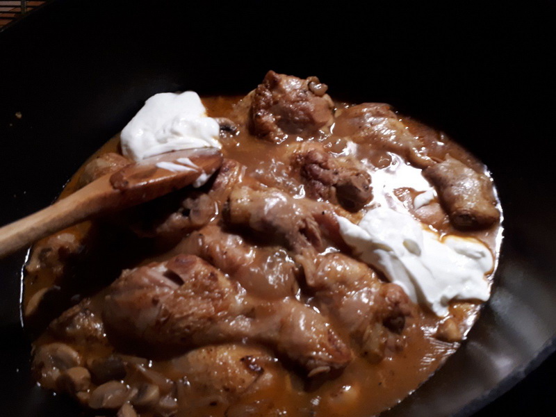 - En fin de cuisson, ajouter deux cuillères à soupe de crème fraîche, mélanger, laisser sur feu doux à découvert pendant 5 minutes.
