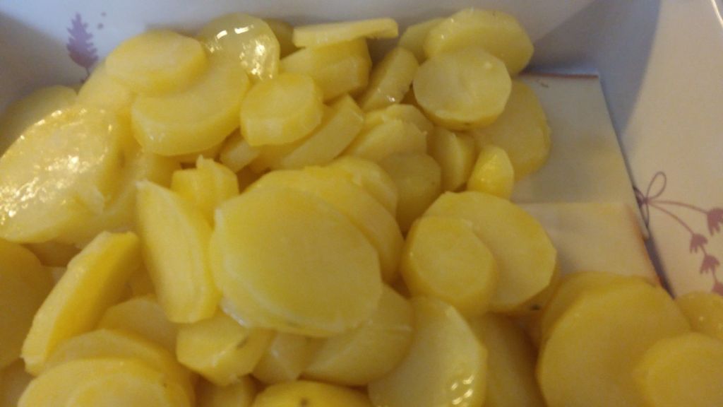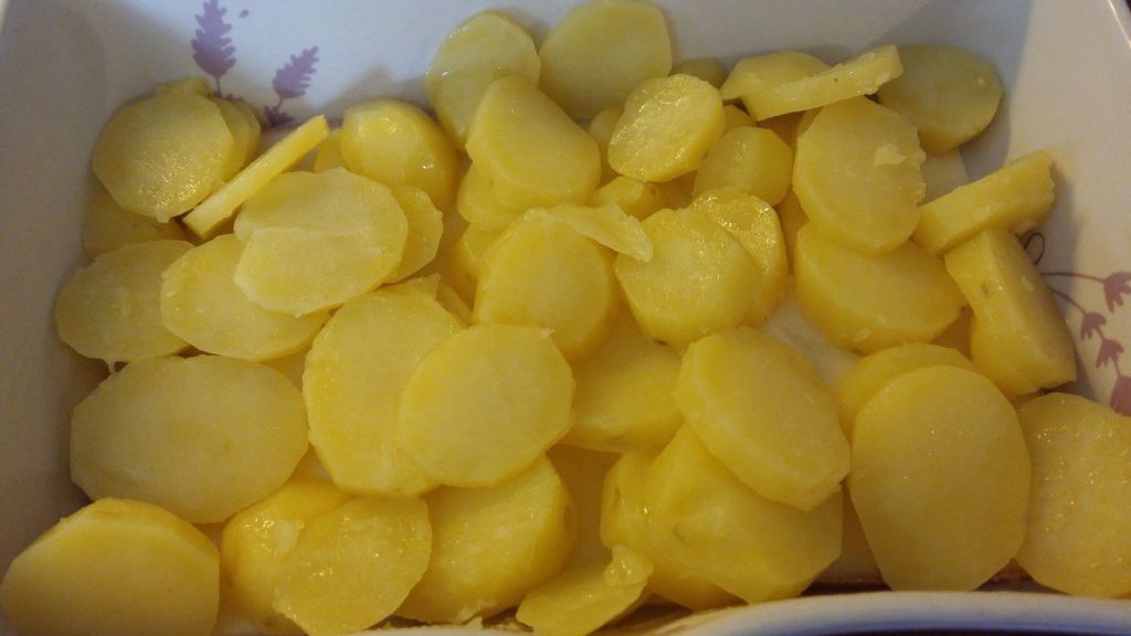 - Faire cuire vos pommes de terre à l’eau, compter 10 minutes de cuisson à partir de l’ébullition, les couper en fines lamelles.