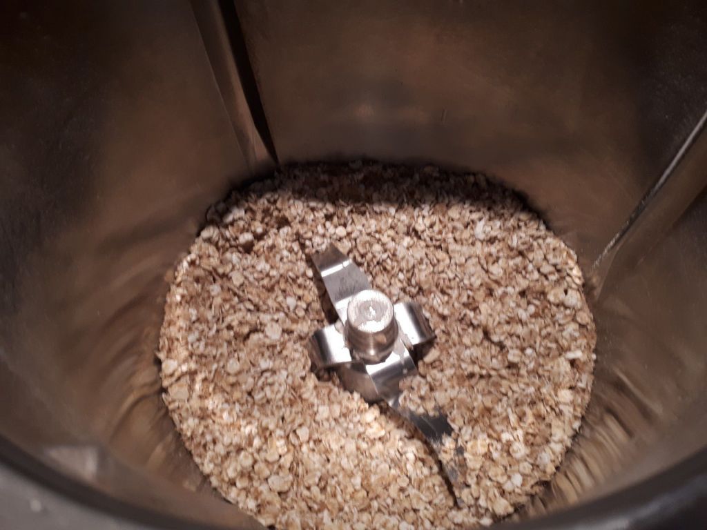 - Dans le bol du Thermomix mettre les flocons d’avoine avec le sucre, la poudre d’amande, la levure et la cannelle puis mélanger 30sec/vit3.
