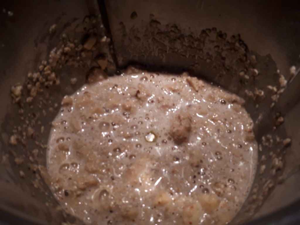 - Ajouter le lait et les œufs, les pommes et les noix puis mélanger 30sec/vit3.