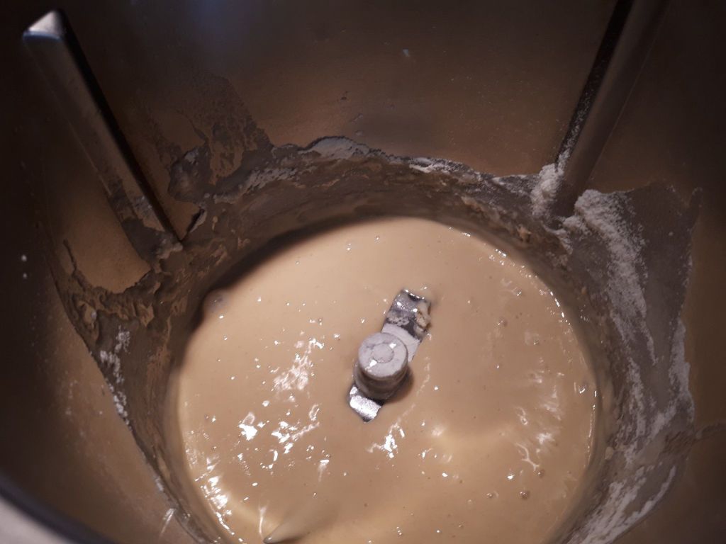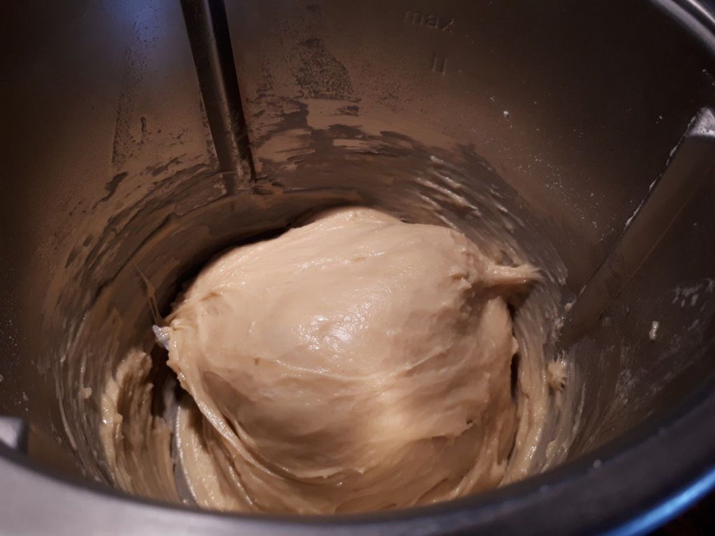 - Mettre dans le bol de votre Thermomix votre levure et le lait puis faire chauffer 2min/37°C/vit2, laisser reposer 5 minutes puis ajouter 200g de farine, le sucre, le sel et les œufs, puis mettre 5 minutes en mode pétrin, ajouter le beurre mou, la vanille, le rhum et le reste de farine puis pétrir à nouveau 5 minutes.