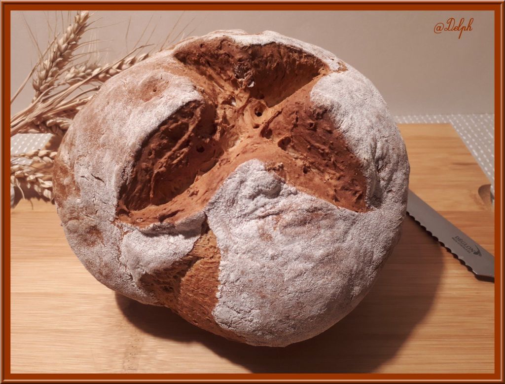 - Sortir la pâte, la déposer sur un plan de travail fariné, donnez-lui une forme ronde et placez-la sur une plaque de cuisson. Tracer une croix sur le dessus du pain, puis le placer au four pendant 15 minutes au bout de ce temps diminué la température à 200°C, et laisser le encore 15 minutes. Retourner le pain et laisser cuire encore 5 minutes (il doit être légèrement coloré et sonner vide, creux, quand on tape dessus).