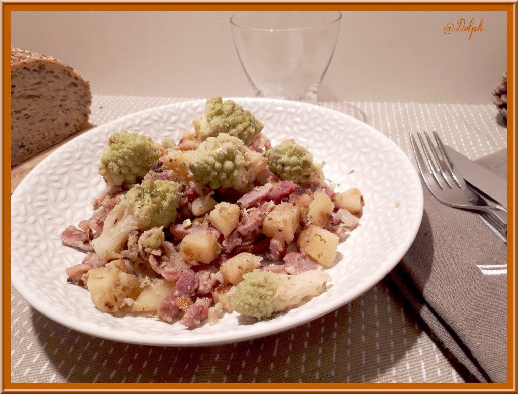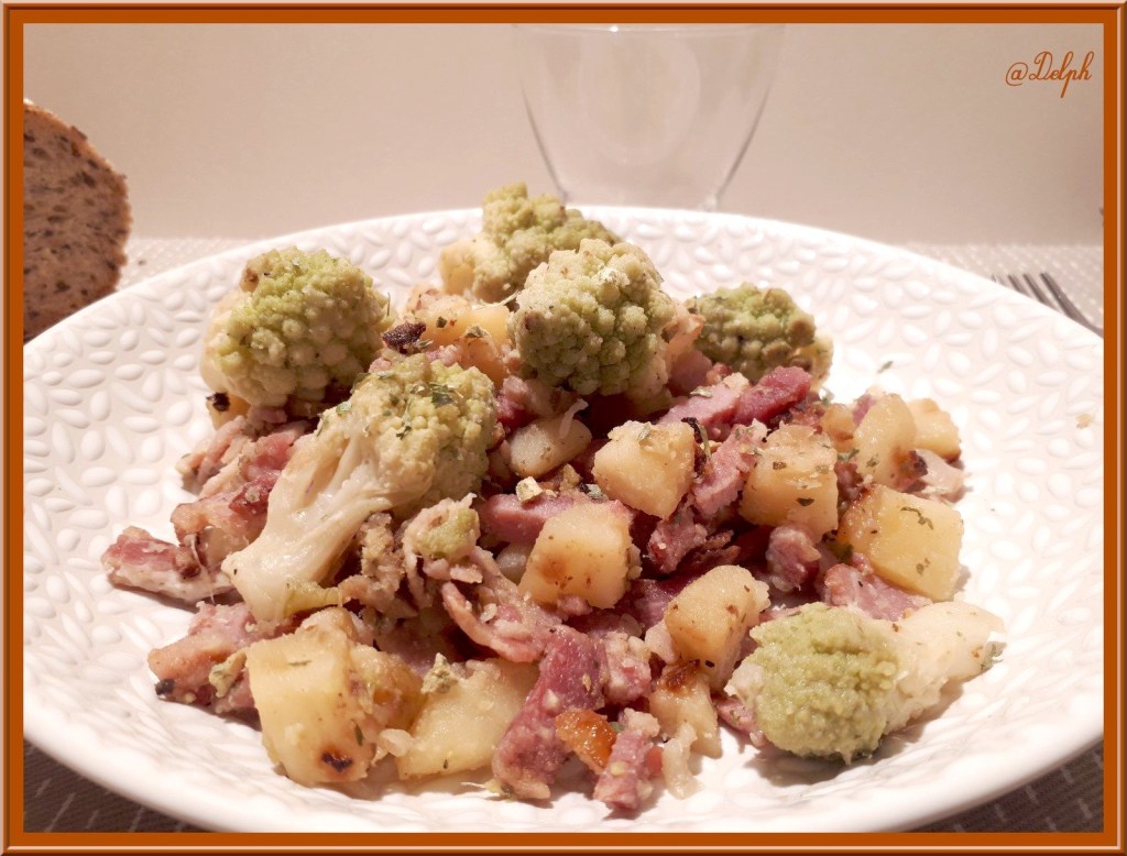 Je me suis laissé tenter par ce chou, je le trouve très beau, et en plus je l’aime beaucoup. Voici une petite poêlée toute simple, mes pommes de terres étaient fondantes à souhait et mon petit chou légèrement croquant, c’est un régal.