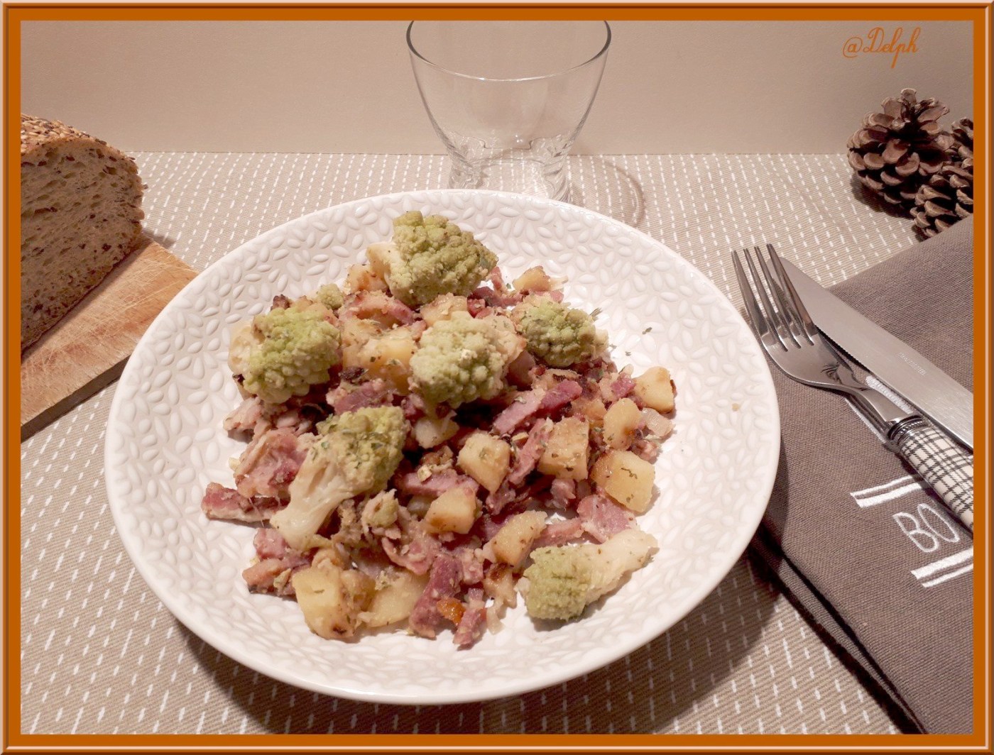 Je me suis laissé tenter par ce chou, je le trouve très beau, et en plus je l’aime beaucoup. Voici une petite poêlée toute simple, mes pommes de terres étaient fondantes à souhait et mon petit chou légèrement croquant, c’est un régal.