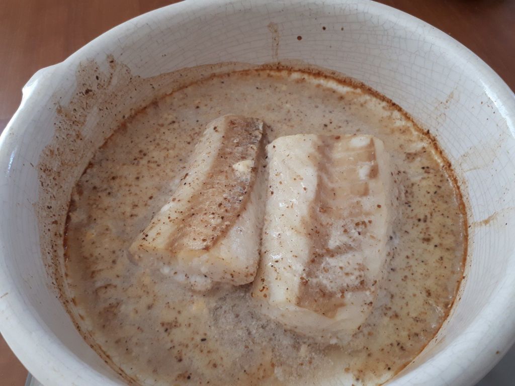 - Dans un récipient mélanger la crème avec le fumet de poisson, le curry le vin blanc, assaisonner à votre goût. Napper le poisson de cette préparation.