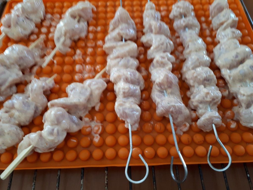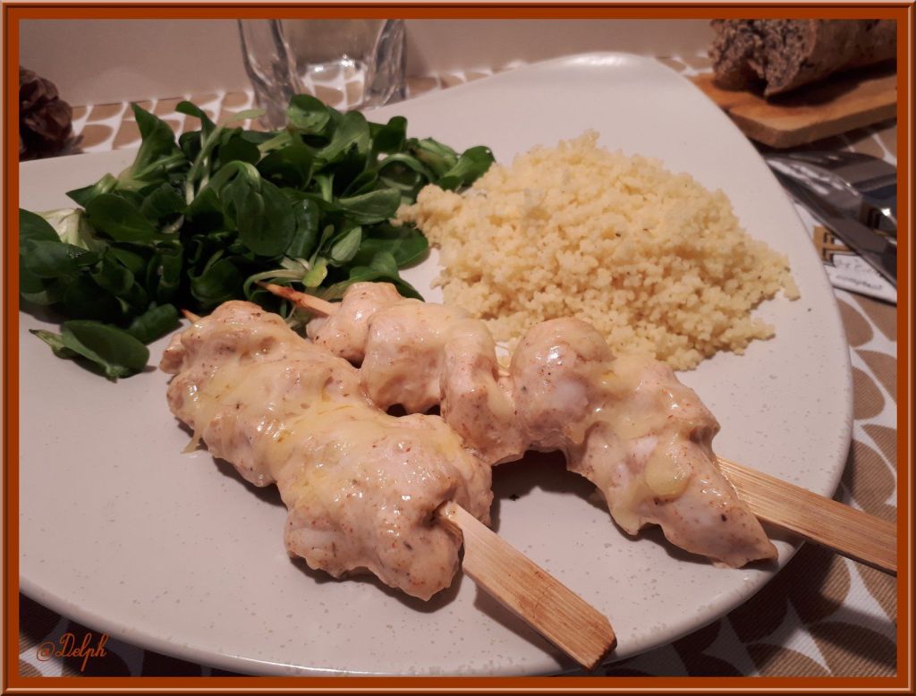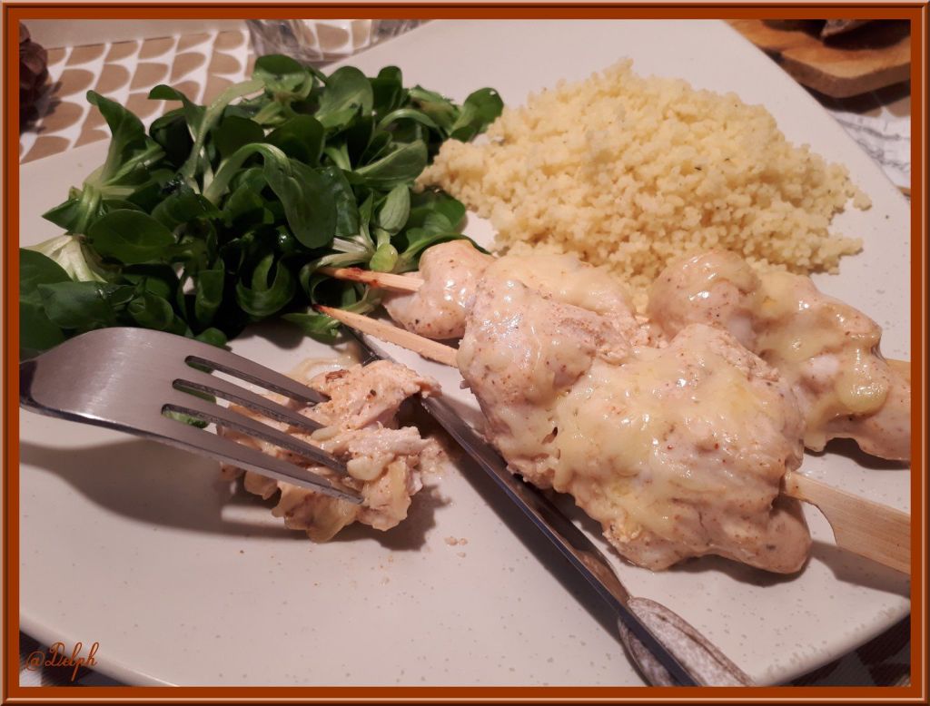 J’avais envie de petites brochettes, mais pas envie de sortir la plancha, alors j’ai testé au four avec une bonne marinade pour que la viande reste moelleuse à souhait. C’est un régal. Vous pourrez les accompagner de riz, semoule ou pâte..