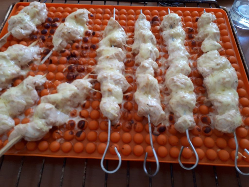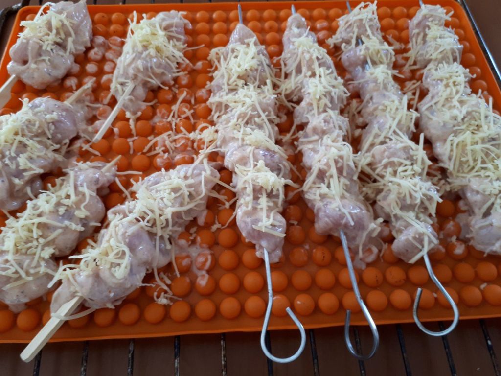 - Préparer vos brochettes en mettant les lanières sur vos piques, les disposer sur une plaque, saupoudrer de Comté râpé puis mettre au four environ 10 minutes.