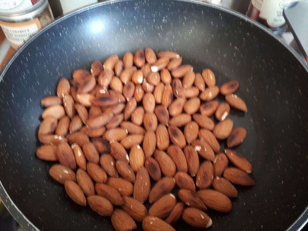 - Faire torréfier les amandes quelques minutes dans une poêle anti adhésive.