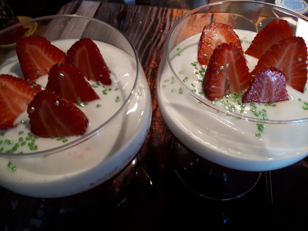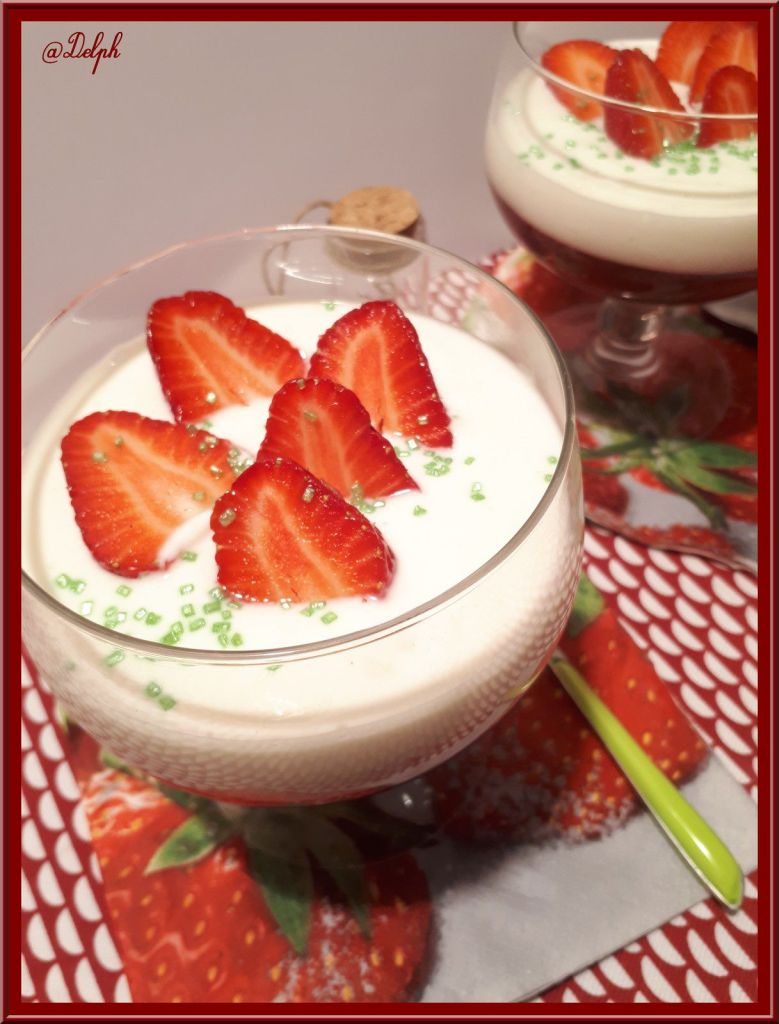 - Mettre votre purée de fraises dans vos coupes ou verrine, laisser au frais.
