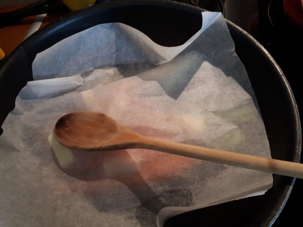 - Verser de l’eau pour recouvrir les carottes (environ 2 verres). Poser un papier sulfurisé par dessus et appuyer pour mouiller le papier, vous pouvez déposer une cuillère en bois dessus pour qu’il ne bouge pas.