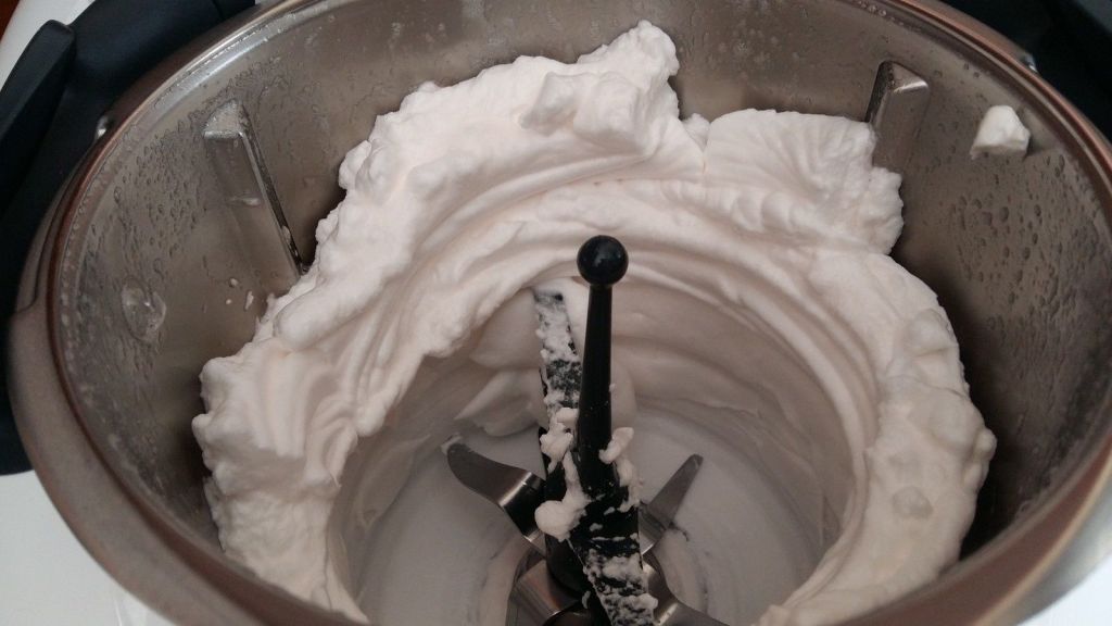 1. Mettre les blancs d’oeufs dans votre bol avec une pincée de sel, donner deux coups de turbo, insérer le fouet et monter les blancs 3min/vit3,5 sans le gobelet. A la sonnerie, réserver les blancs en neige, laver et bien sécher le bol et le fouet.