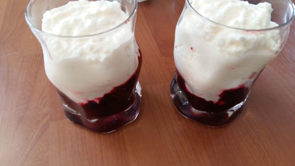 4. Mettre au fond de votre verre environ deux cuillères à soupe de purée, recouvrir de crème puis compléter par de nouveau de la purée.
