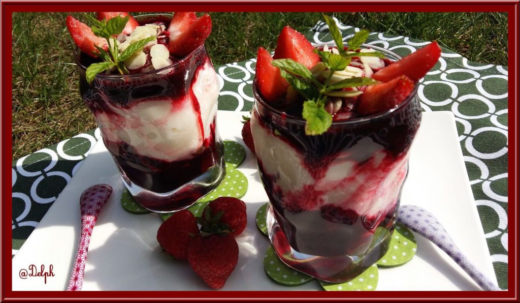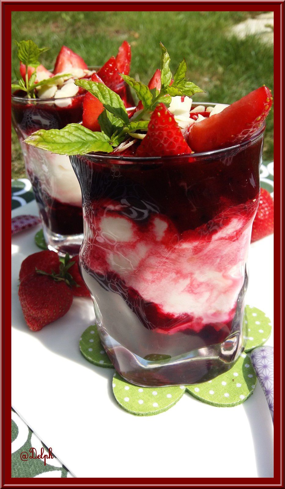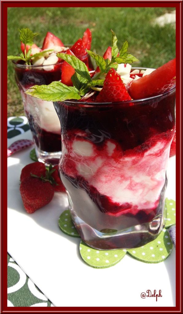 Il me restait de la purée de fraises, et pour ne pas la gâcher j’ai fait ces petits desserts. C’est très frais et léger, j’ai pris la recette chez supertoinette.