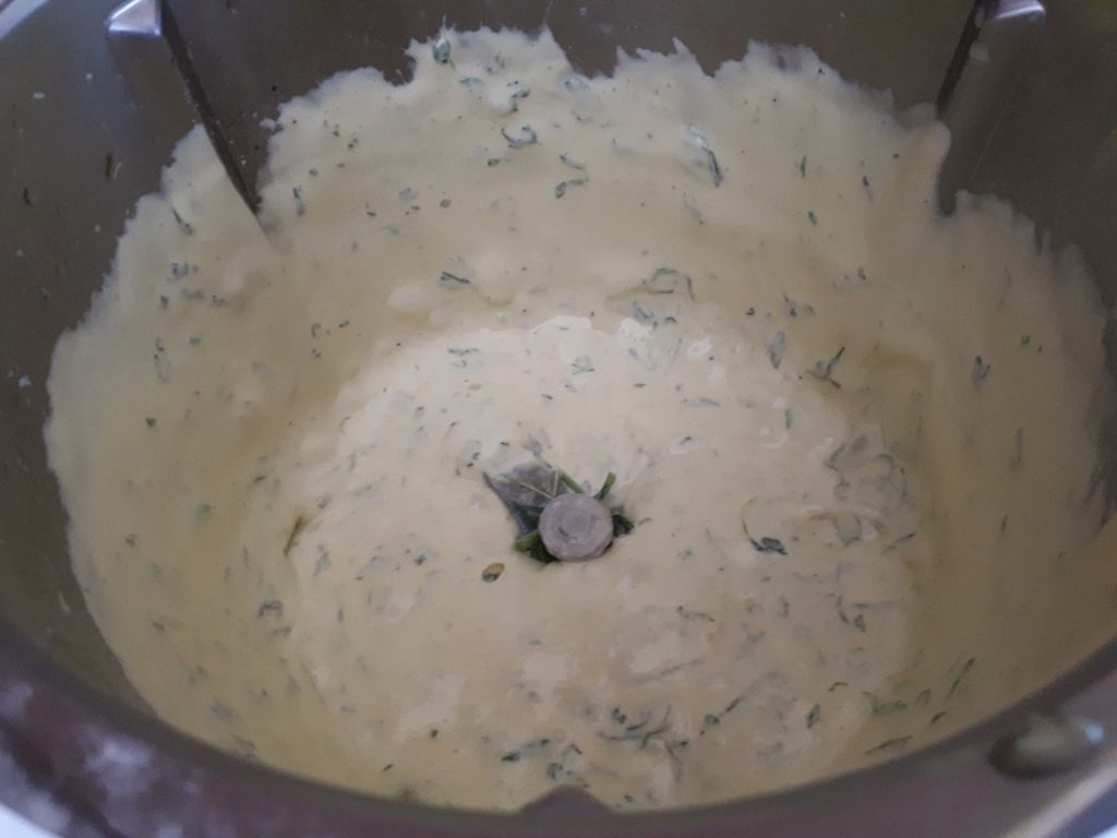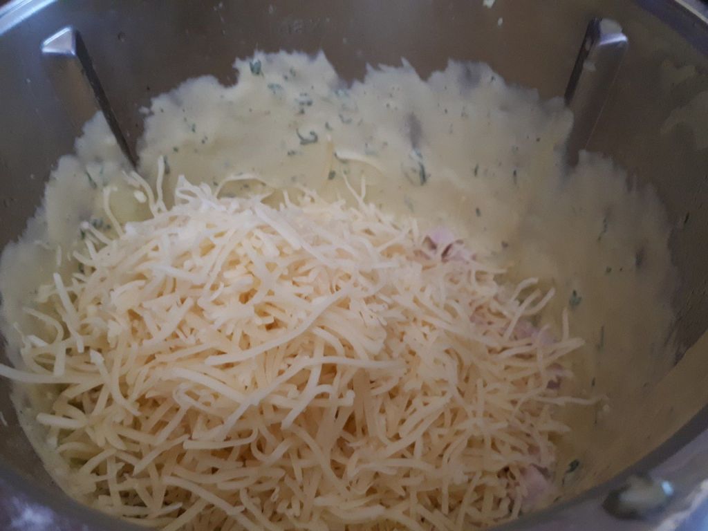 - Incorporer les fanes puis mixer 20sec/vit6. Ajouter le fromage râpé et les dés de poulet puis mélanger 30sec/couteau inversé/vit2.