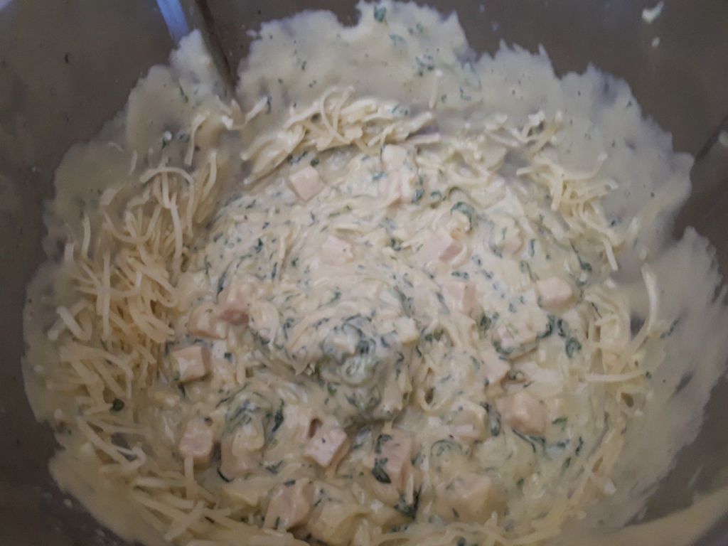 Et voici une recette anti-gaspi que j’ai piochée chez Françoise, sur son sublime blog « Pounchki ». J’ai juste mis plus de Comté car je n’ai pas mis de vache qui rit, et mis du poulet au lieu du jambon.