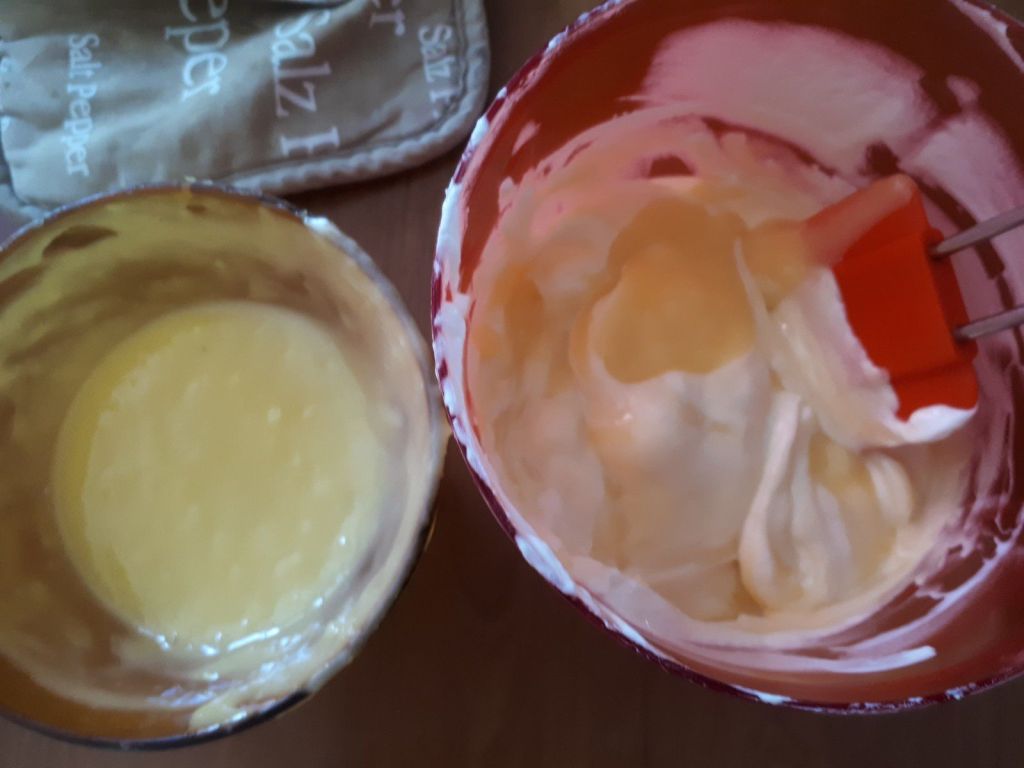 - Verser le mélange lemon curd et citron dans la crème fouettée et incorporer le délicatement à la maryse.