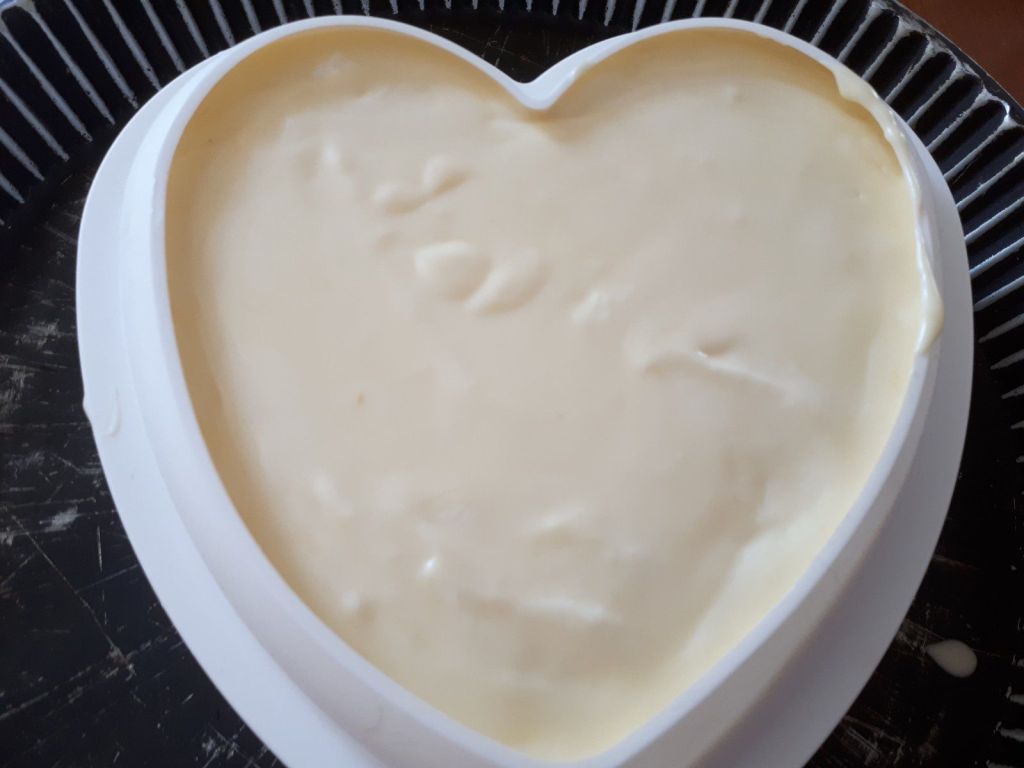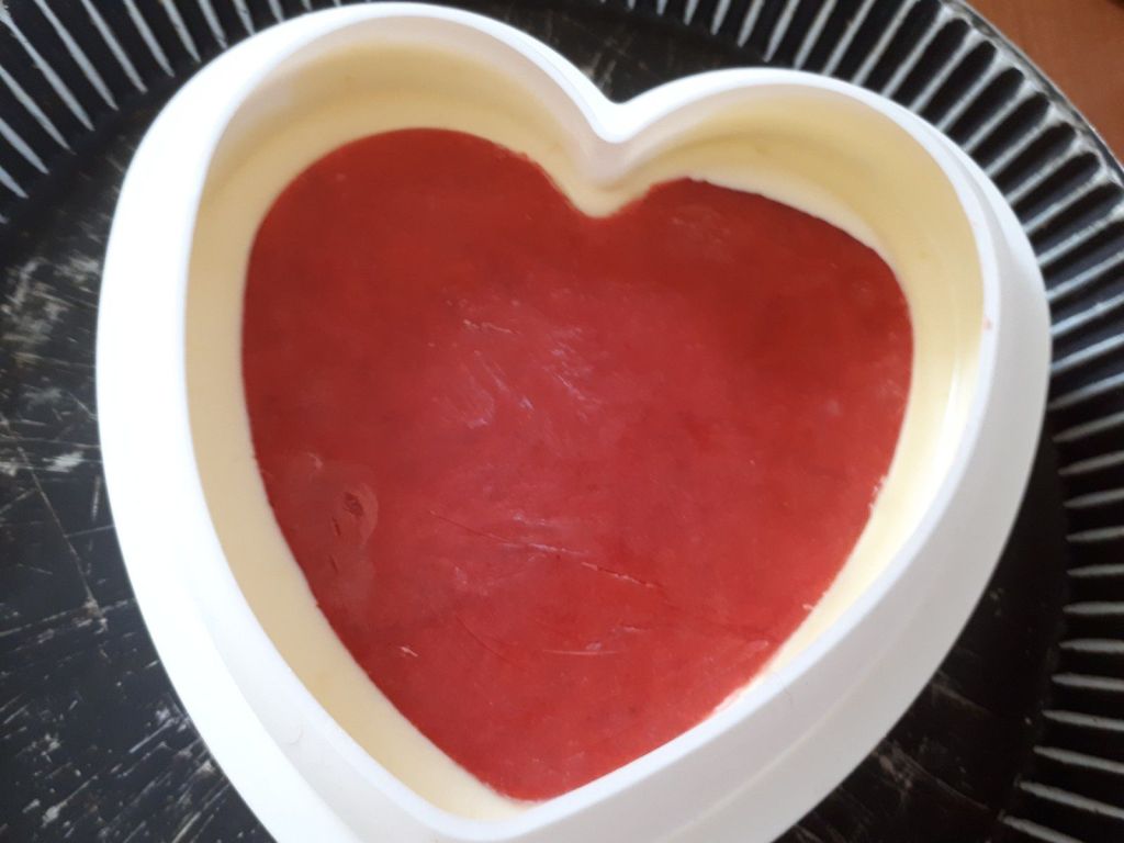 - Poser le moule Ti Amo sur le plan de travail et déposer la moitié de la mousse citron au fond du moule.