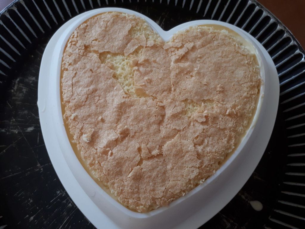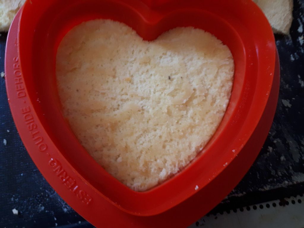 - Poser l’emporte pièce à insert, côté intérieur sur la génoise et découper la génoise en forme de cœur.