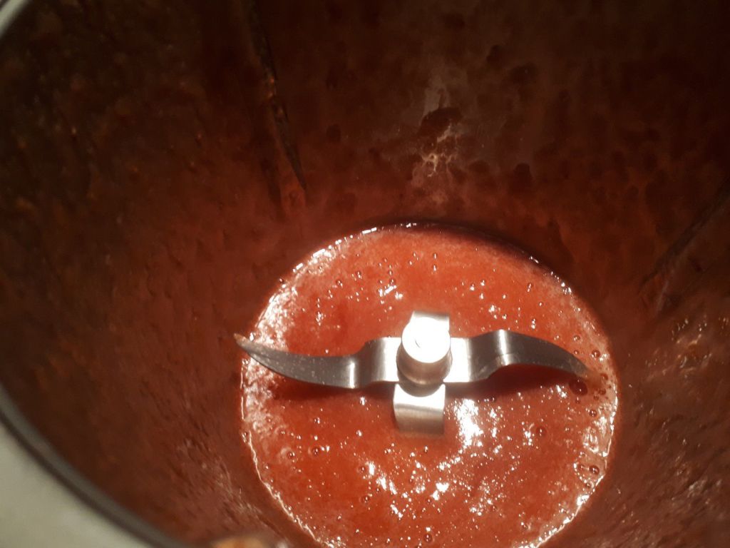 - Ajouter la gélatine essorée, le colorant et mixer 10sec / vit 8