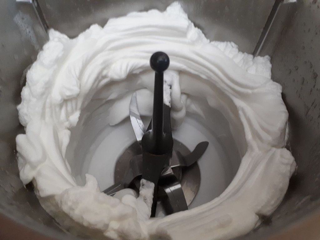 - Monter la crème liquide en chantilly ferme. J’utilise mon speedy chef.