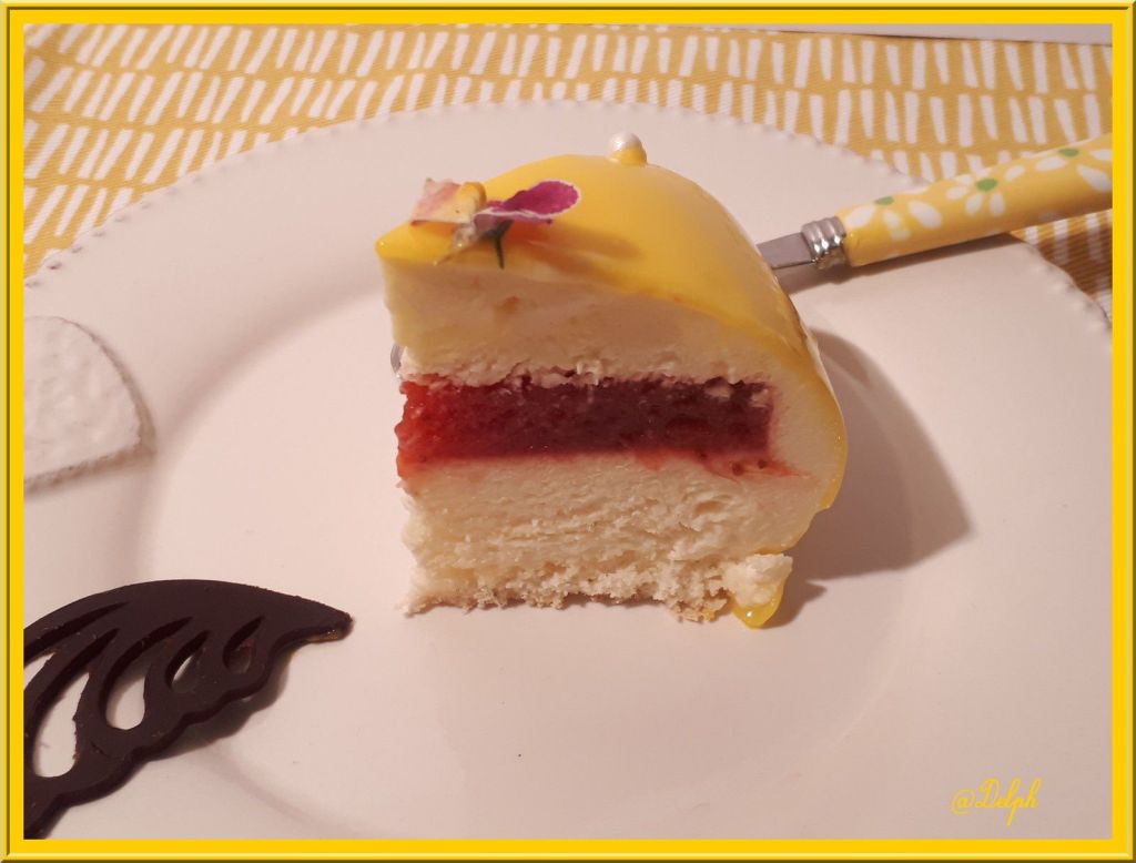 - Démouler l’insert fraise et le poser sur la mousse citron.