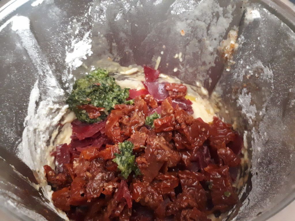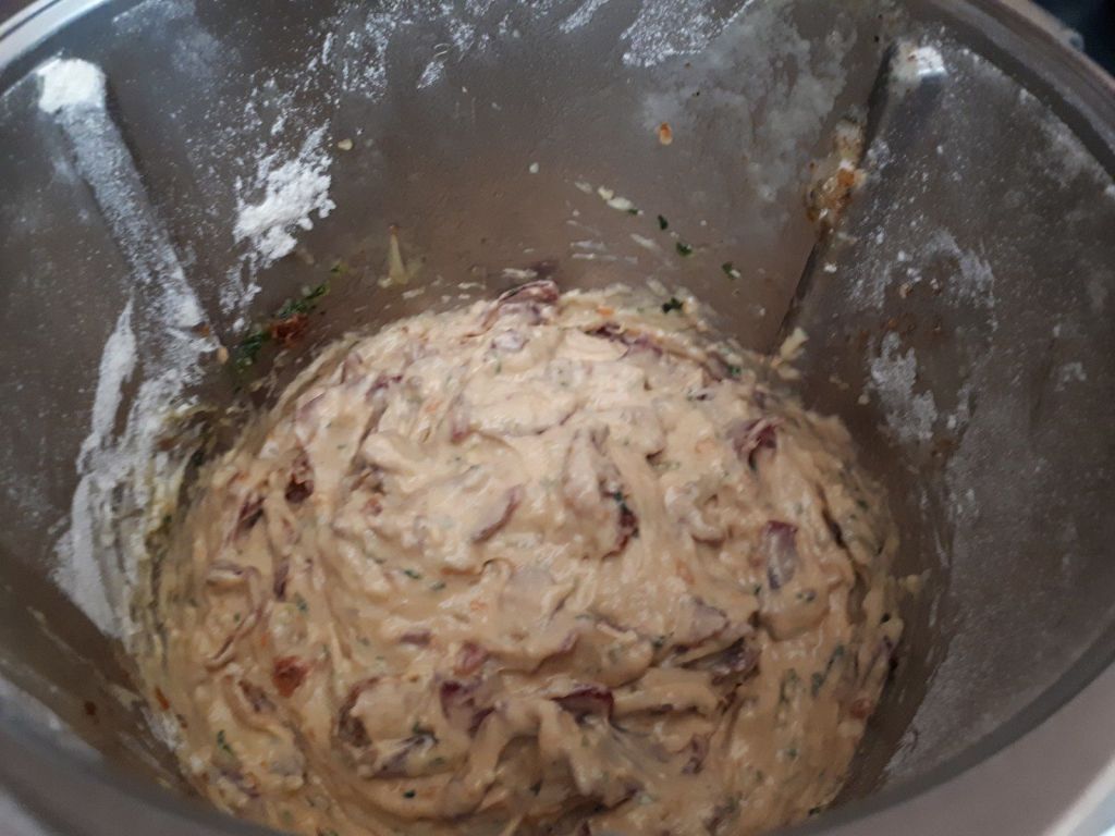 - Couper le bœuf séché en petits bouts, égoutter et enlever l’huile de tomates et les couper en petits bouts également, les ajouter dans le bol, avec le pesto puis mélanger 30sec/couteau inversé/vit3.