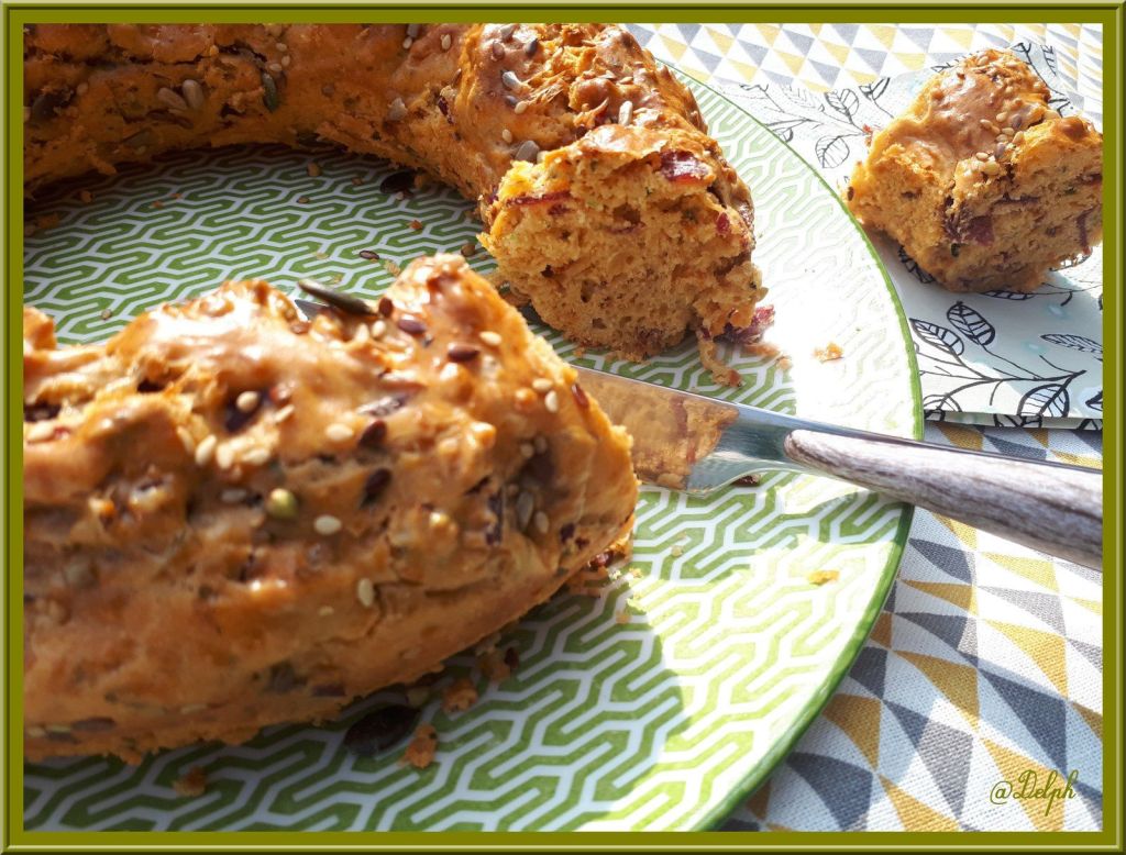 C’est un gâteau salé hyper simple à réaliser on peut mettre ce que l’on veut comme garniture moi j’ai pris ce qu’il y avait dans mon frigo, tomates séchées, et Bresaola. Vous pourrez le déguster en pique nique, ou en entrée avec une salade, ou bien le picorer pour un apéro dinatoire.