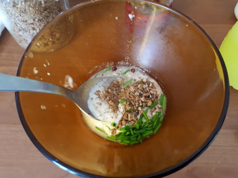 - Mettre dans votre bol la mayonnaise, le citron la ciboulette ciselée, le sel et le poivre, mélanger le tout.