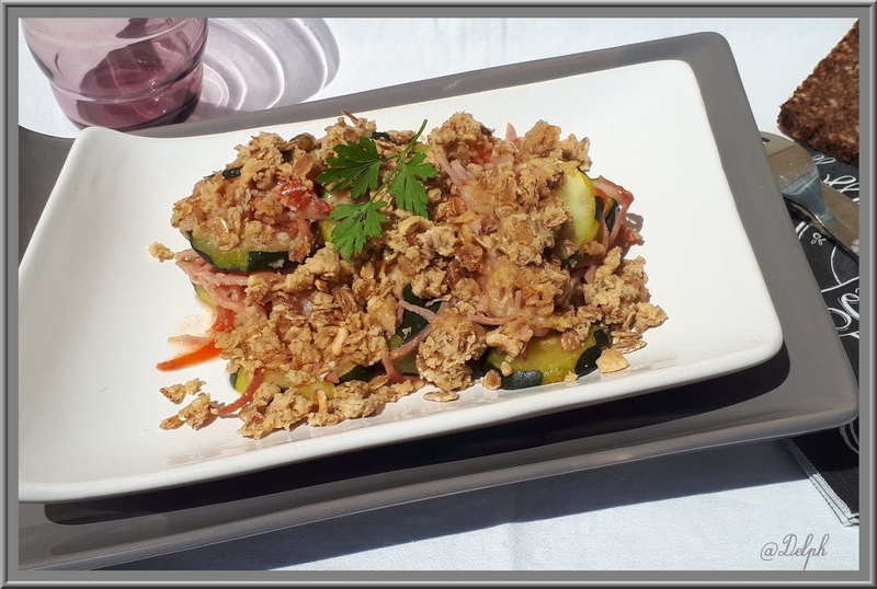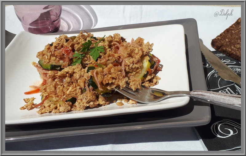 J’ai eu envie de tester les Mueslis de « Terres et Céréales« . que j’ai eu le plaisir de recevoir grâce à Pierre de « Cuisine à l’ouest » en version salée..Et bien je ne regrette pas c’est un régal et cela change du crumble traditionnel.