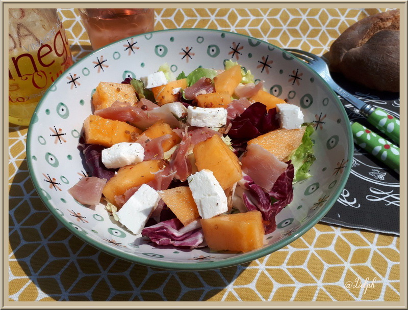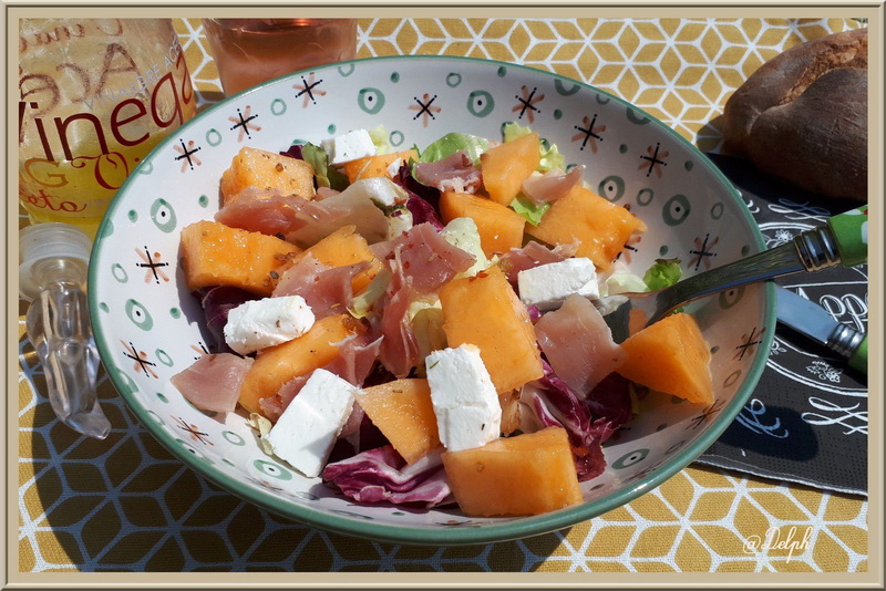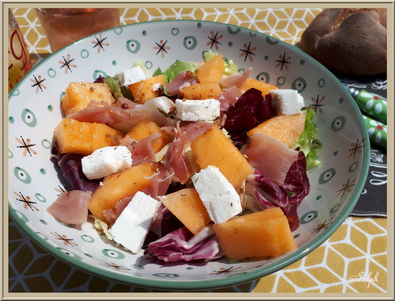Salade feta jambon cru et melon