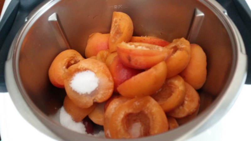 1. Laver les abricots et les couper en 2, retirer le noyau puis couper la chair en morceaux. Presser le citron, mettre le tout dans le bol avec le sucre puis mixer 15sec/vit6.