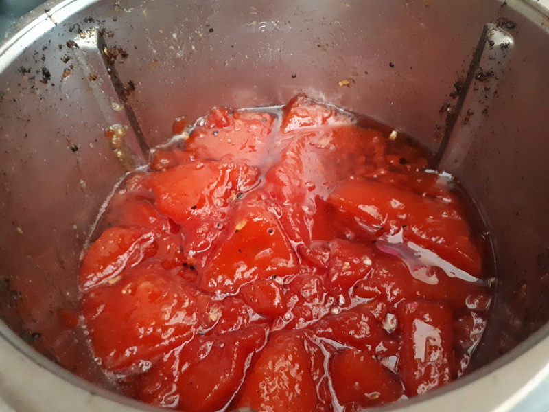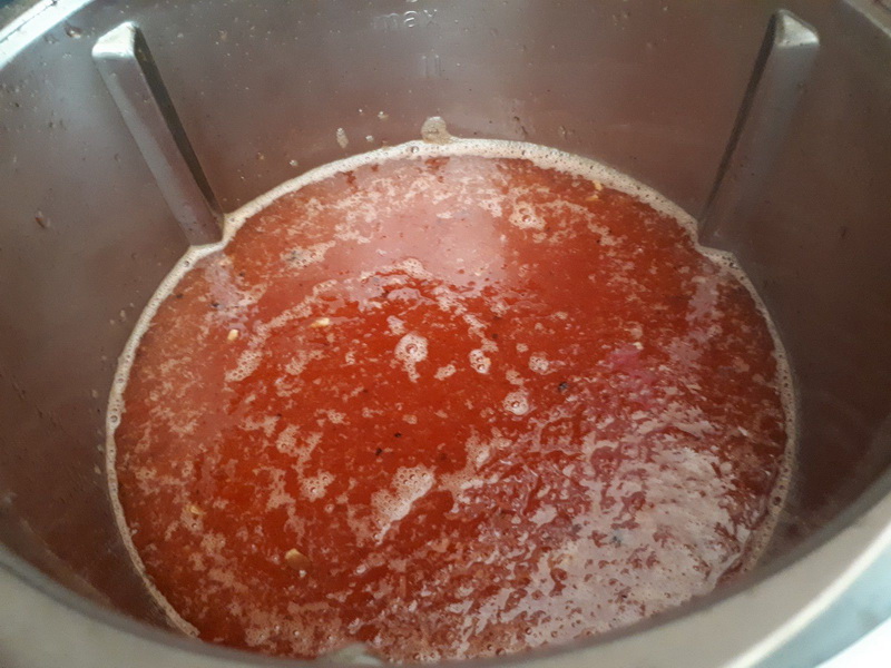 - Pour ma part, j’ai ajouté l’agar agar et j’ai poursuivi la cuisson 2min/110°C/vit1, avec le Varoma à la place du gobelet doseur.