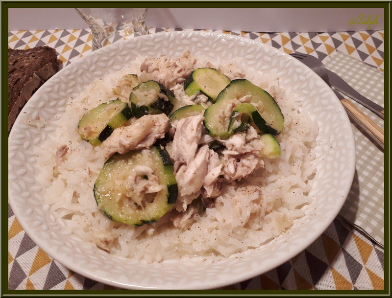 J’aime beaucoup le lait de coco, et j’ai eu envie de l’utiliser avec mes belles courgettes..Je trouve que c’est très savoureux..Ma présentation n’est pas terrible, mais nous nous sommes régalés.
