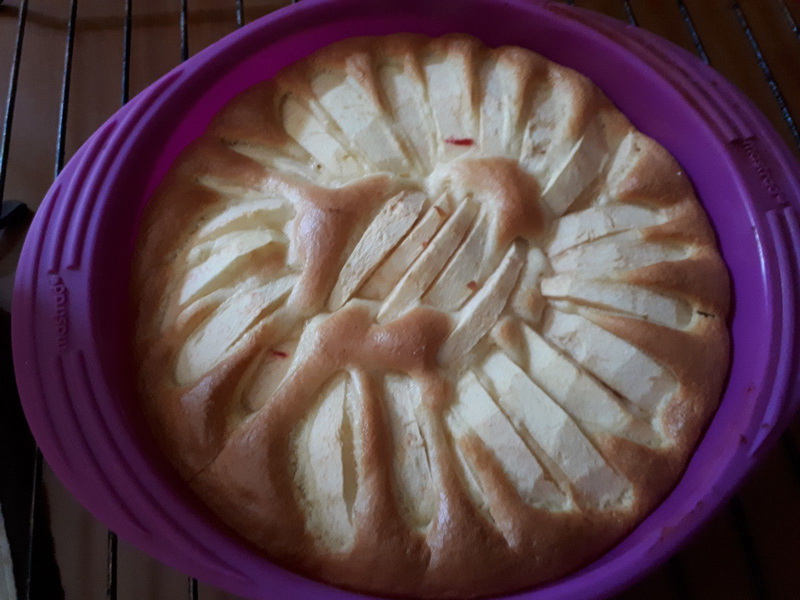 - Beurrer votre moule à manqué. Y verser la pâte. Poser les pommes coupées en lamelles fines sur la pâte.