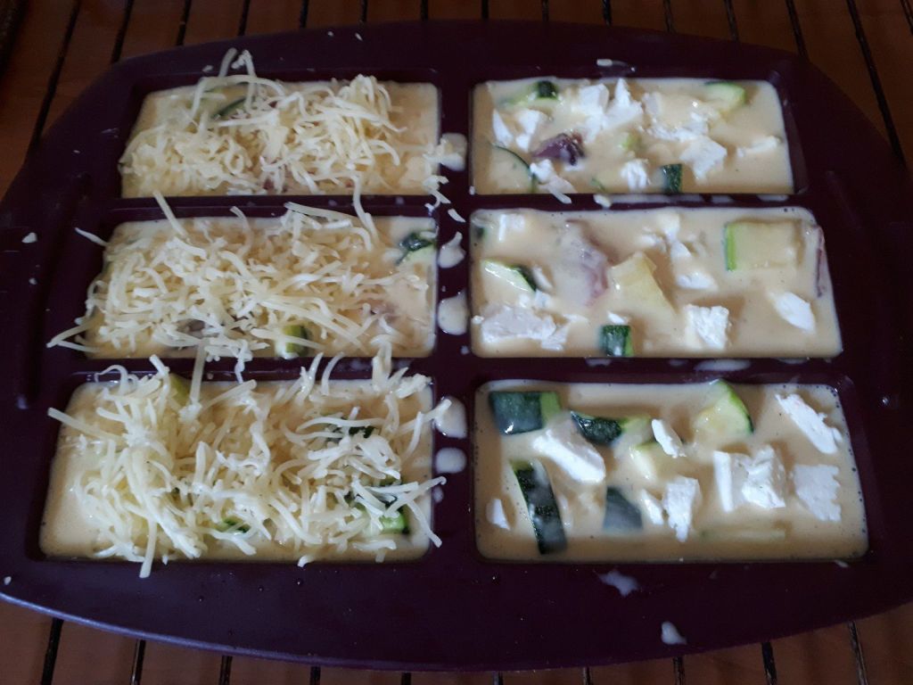 - Dans un saladier, mélanger le beurre fondu, la farine, les œufs, le lait et la levure. Ajouter la courgette et 50 g de comté râpé, le magret coupé en petits morceaux sans le gras, saler et poivrer.