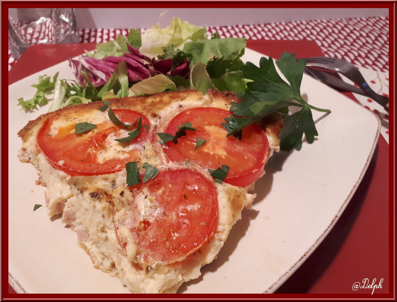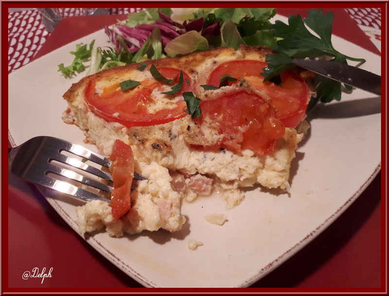 Je me suis inspirée d’une recette trouvée sur le site Cuisine AZ, cette omelette cuite au four est bien pratique à réaliser pour un soir de semaine.