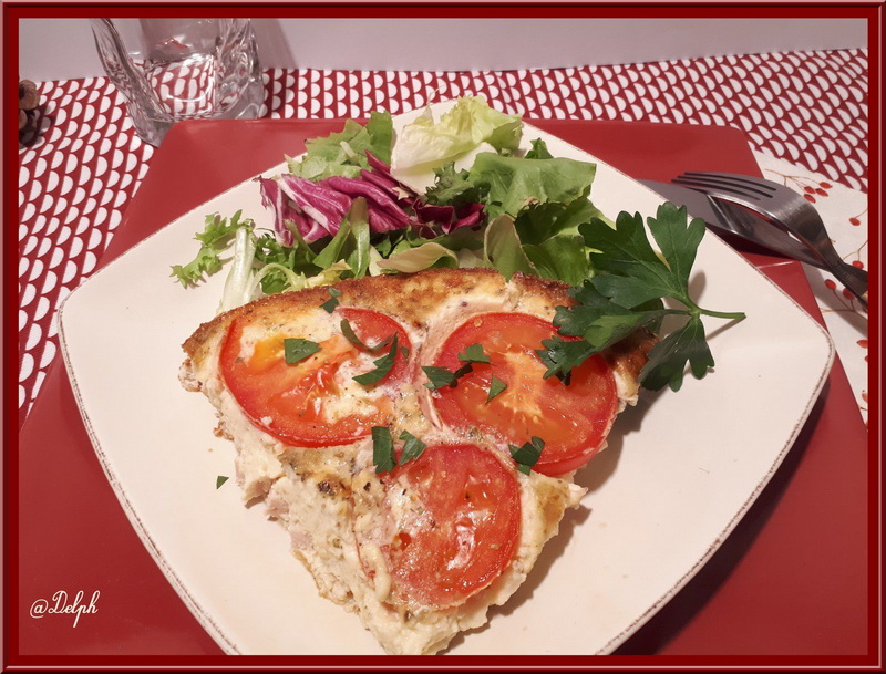 Je me suis inspirée d’une recette trouvée sur le site Cuisine AZ, cette omelette cuite au four est bien pratique à réaliser pour un soir de semaine.