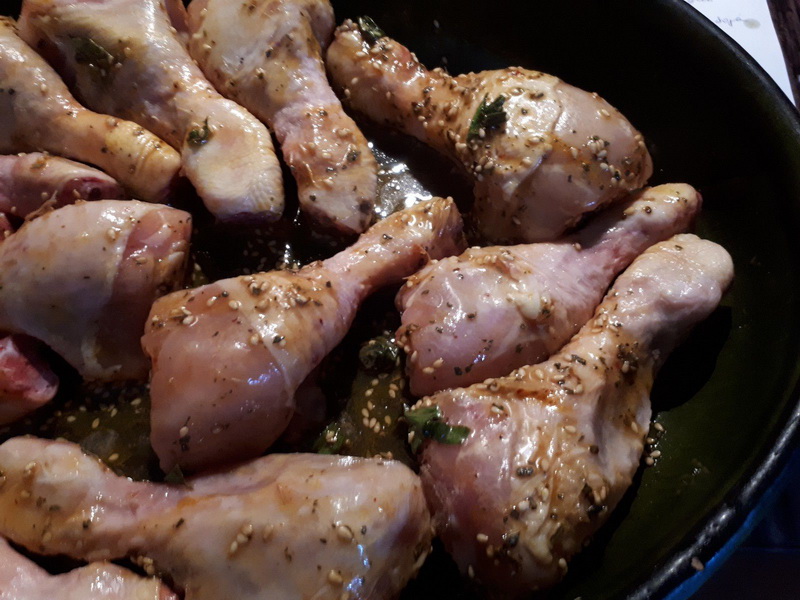 - Déposer les pilons de poulet dans un plat creux, arroser les de marinade et couvrir. Laissez mariner au moins 2 heures au réfrigérateur.