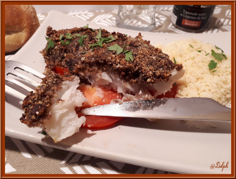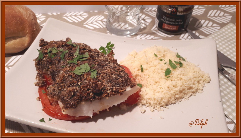 J’ai reçu un pot de tapenade de l’oliveraie Jeanjean et j’ai eu envie de la marier avec du poisson.