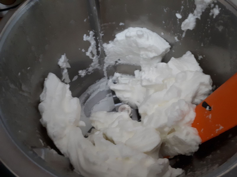- Mettre les blancs dans le bol avec une pincée de sel, puis donner deux coups de turbo, insérer le fouet puis fouetter 3 min/vit 3,5 sans le gobelet. Réserver et rincer le bol.
