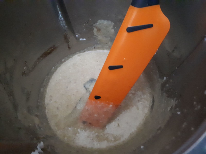 - Mettre le beurre en morceaux dans le bol puis faire fondre 2min/90°C/vit2, ajouter l’amande en poudre, la farine, le sucre glace et les épices puis mélanger 30sec/vit3, incorporer les blancs en neige puis mélanger 1min20/couteau inversé/Vit2.