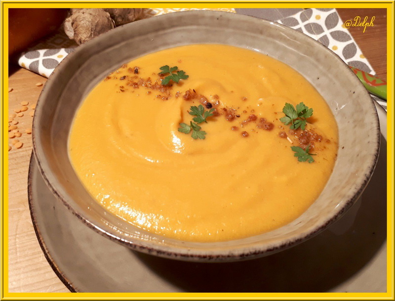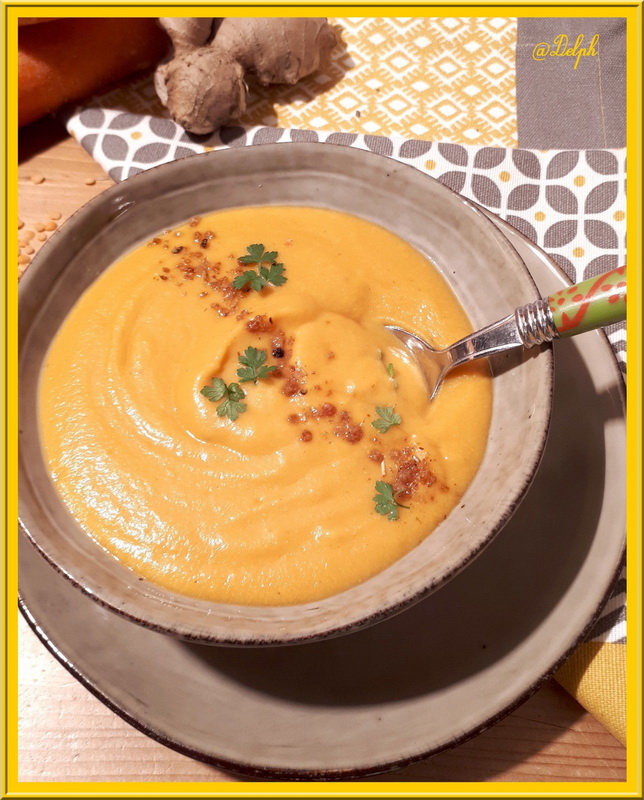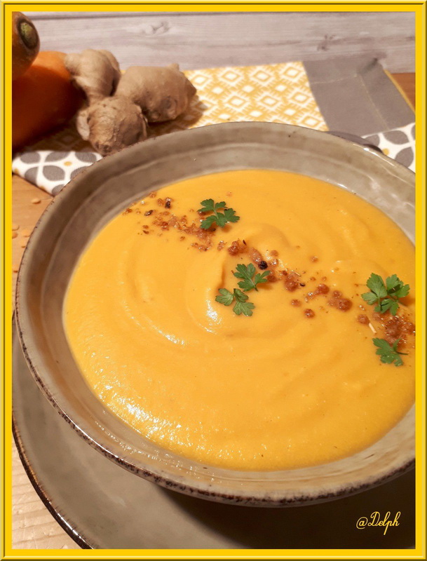J’ai modifié les quantités de carottes, j’en ai mis plus, elle est donc un peu plus épaisse, et j’ai divisé par deux la quantité de gingembre.