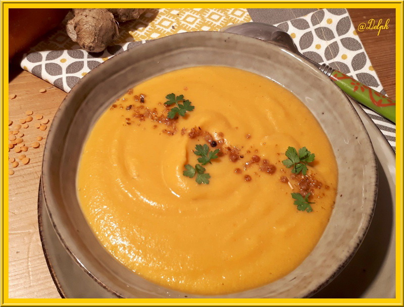 J’ai modifié les quantités de carottes, j’en ai mis plus, elle est donc un peu plus épaisse, et j’ai divisé par deux la quantité de gingembre.