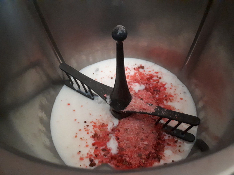 - Mettre les pralines roses dans le bol, mixer 2sec / vitesse 7 et réserver.
